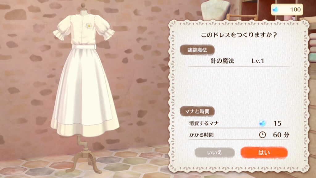 服を持っていく前に個人的にドレス作ったりアレンジしてみたけど、意外と経験値が入らない。レベル上げるのけっこう大変かも。
