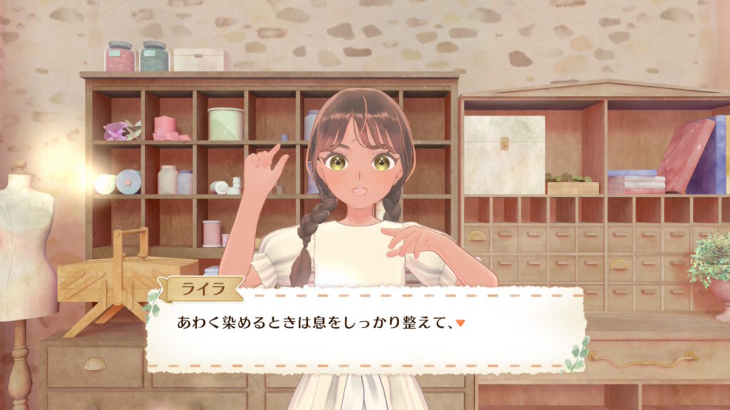 染織魔法の使い手だというライラが、主人公が困ってるのではとわざわざアトリエまで来てくれていた。
