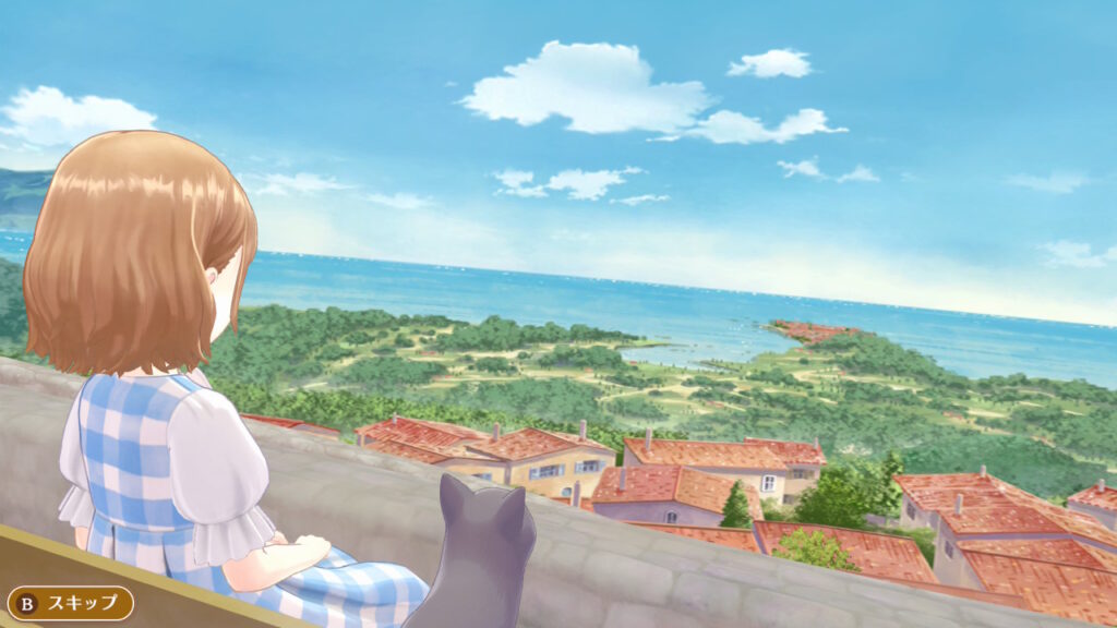 パン屋でライラと出会う。その後、なぜか村の入り口も解放されたので行ってみる。そこではオリビアという女の子がいた。どのキャラも可愛い。色合いが優しくて良いよね。