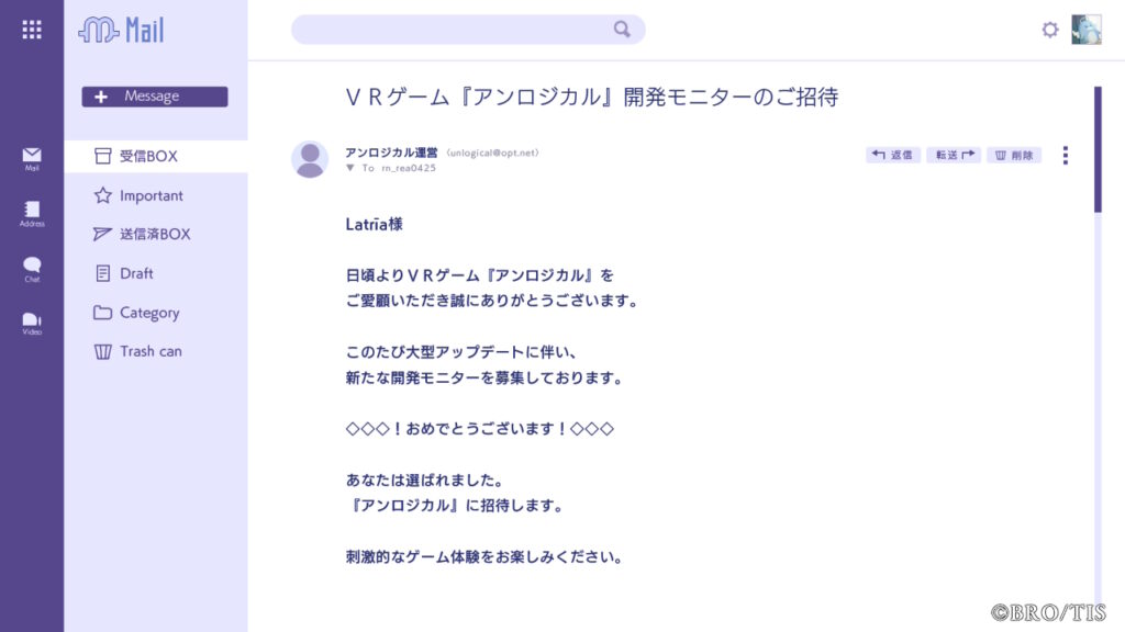 ある日、音楽ユニットを組んでいる相方の藍のもとに届いた奇妙なメールを見せられた。「あなたは選ばれました。アンロジカルに招待します」